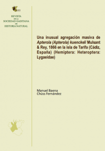 La Sociedad Gaditana de Historia Natural acaba de publicar en el volumen 19 de la Revista de la SGHN un estudio que documenta una agregación masiva e inusual de Apterola kuenckeli en la isla de Tarifa, un fenómeno nunca antes descrito para esta especie.