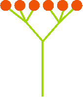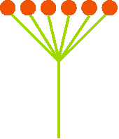 En una planta, normalmente hay más de una flor, que pueden aparecer solitaria en una ramita o en grupos. A las agrupaciones de las flores las denominamos INFLORESCENCIAS. Las hay simples con unas pocas de flores alojadas en un eje o más complejas como los capítulos, que parecen una flor, pero que realmente es una agrupación muy compacta de flores.Las inflorescencias pueden ser simples o compuestas, las compuesta son repeticiones de las simples. En el siguiente ejemplo tenemos a la izquierda una inflorescencia simple, la umbela, y en la derecha una inflorescencia compuesta, una umbela de umbelas. |